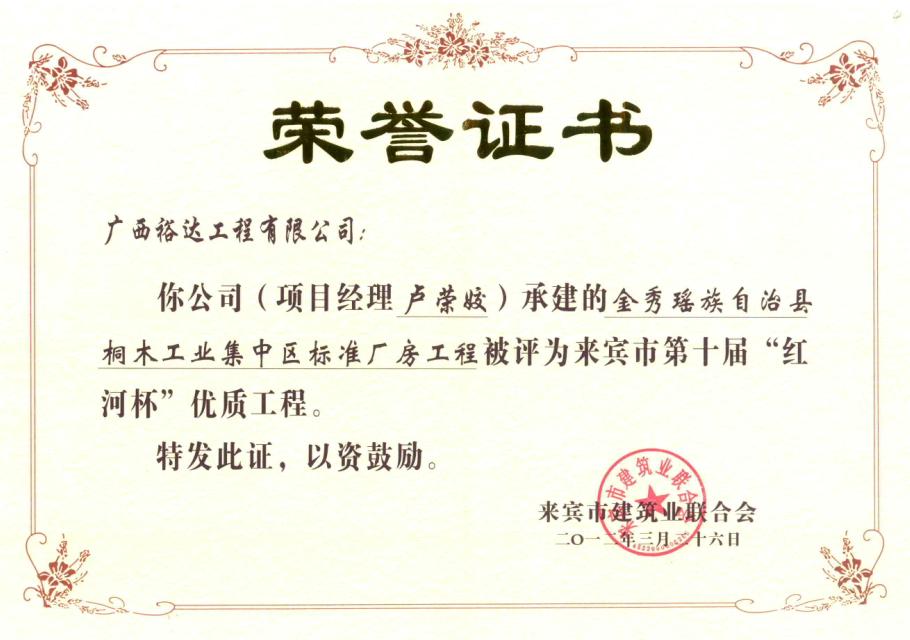 上一篇:2012年來賓市第十屆“紅河杯”優(yōu)質(zhì)工程