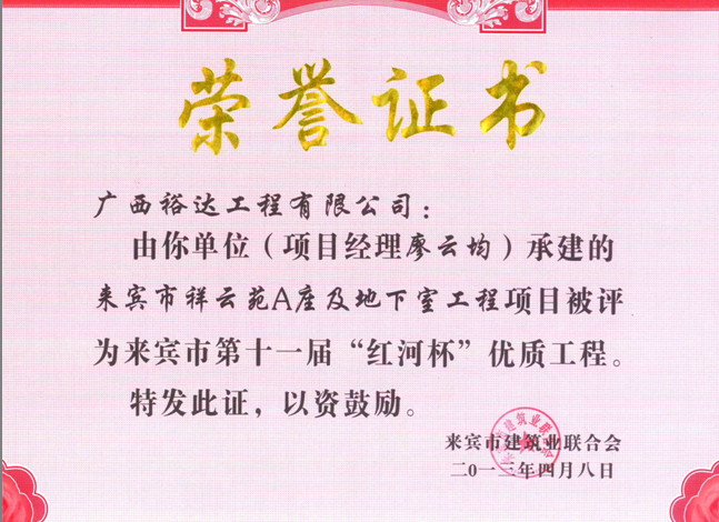 2013年來賓市第十一屆“紅河杯”優(yōu)質(zhì)工程