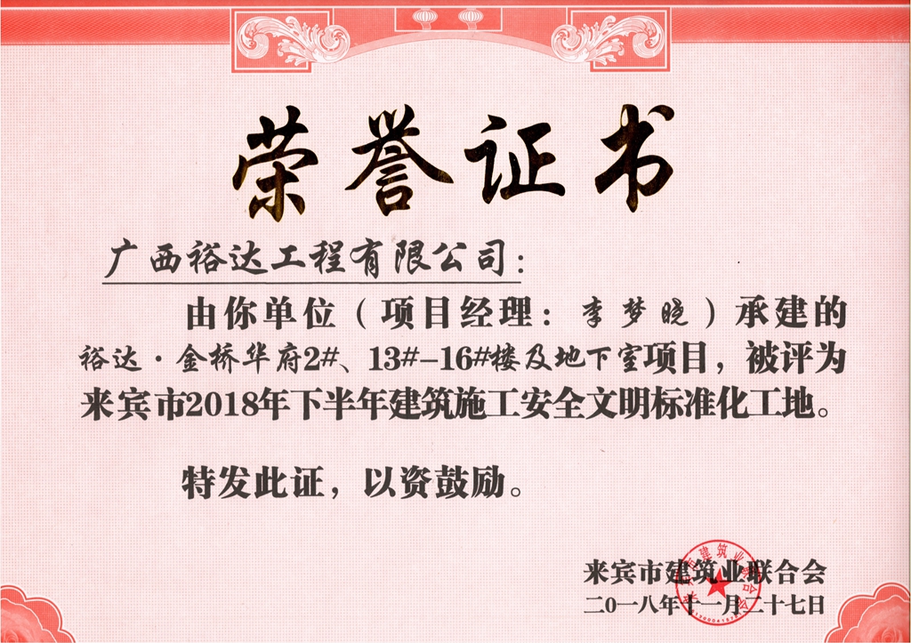 下一篇:來賓市2018年下半年安全文明標(biāo)準(zhǔn)化工地(裕達(dá)。翰林府5#-7#樓及地下室)