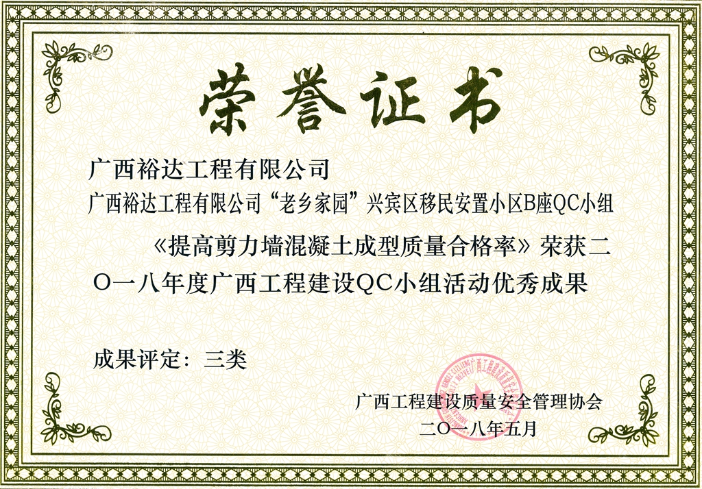 2018年度廣西工程建設(shè)QC小組活動(dòng)優(yōu)秀成果