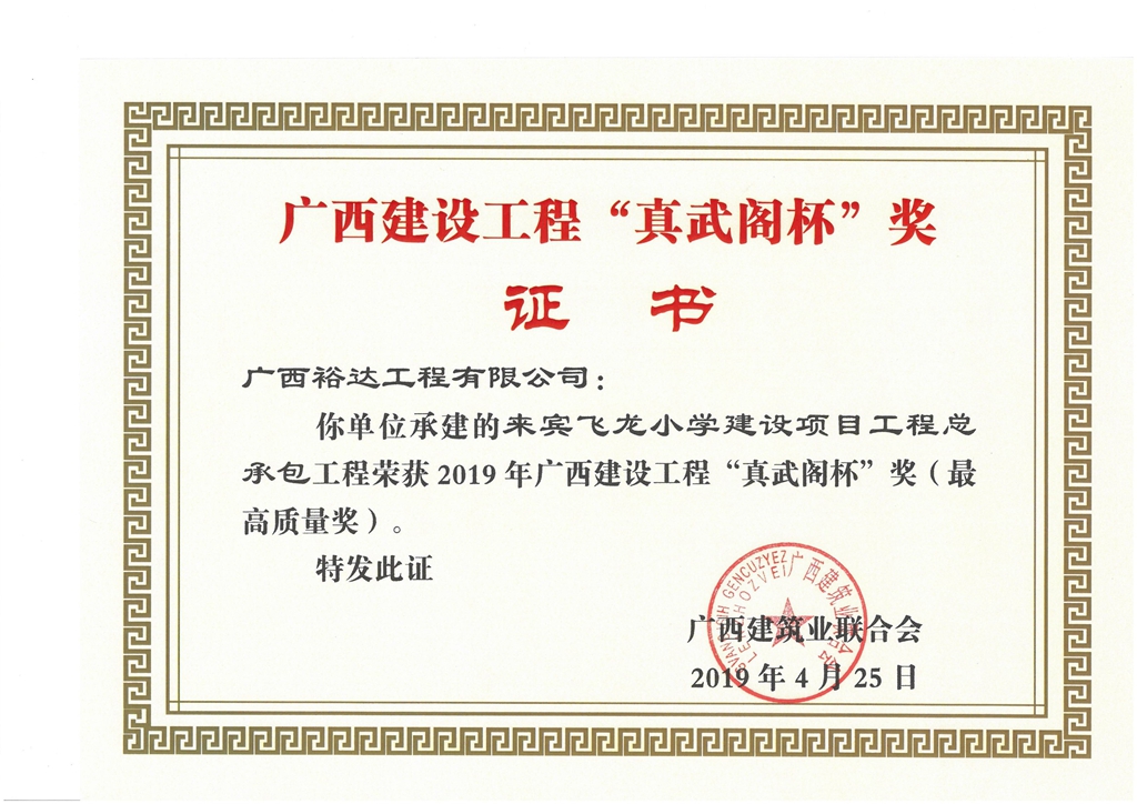 下一篇:來(lái)賓城南初級(jí)中學(xué)工程榮獲2019年廣西建設(shè)工程“真武閣杯”獎(jiǎng)(最高質(zhì)量獎(jiǎng))