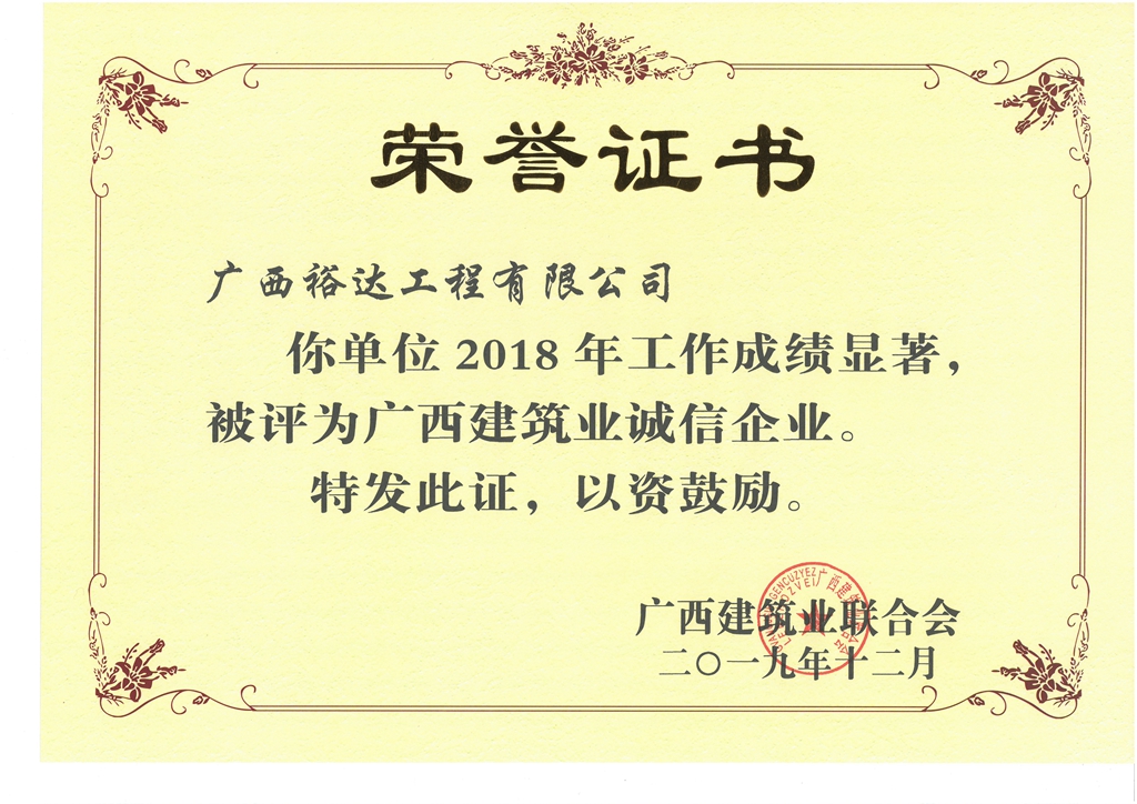 下一篇:來(lái)賓市2018年度建筑行業(yè)“誠(chéng)信企業(yè)”
