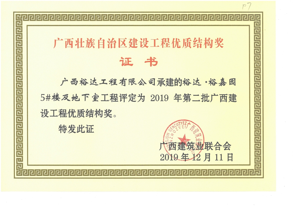 下一篇:裕達·裕嘉園4#樓及地下室工程評定為2019年第二批廣西建設工程優(yōu)質結構獎